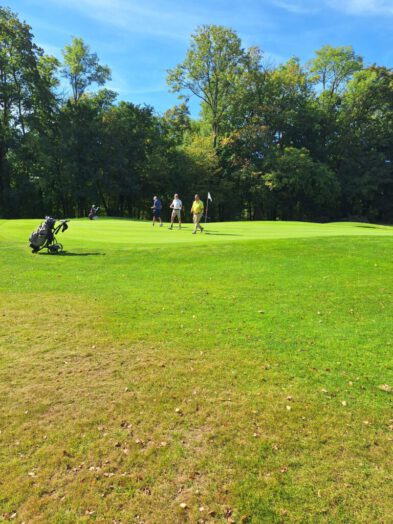 Am Ende folgte ein ganzer Tross dem finalen Flight auf den letzten Bahnen, während sich am 18. Grün die anderen Spielerinnen und Spieler sowie weitere Zuschauer versammelt hatten. Eine tolle Kulisse, die den Puls der Finalisten auf den letzten Metern noch einmal in die Höhe trieb. Vor allem Stephanie Müller, die während der Runde an Antje Wisotzky vorbei auf Platz zwei gezogen war, zeigte beim Putten vor den vielen Zuschauern Nerven. Um ein Haar hätte sie ihren Vorsprung dabei wieder verspielt, blieb schließlich aber doch mit einem Schlag vor Antje Wisotzky, die wiederum mit ebenfalls nur einem Schlag Vorsprung vor Jay Schütte Rang drei belegte.